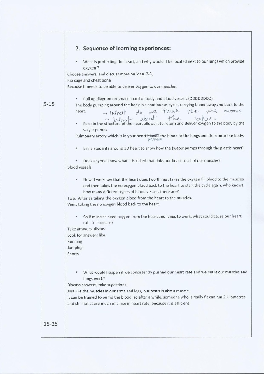 Structuring my questions in my main lesson was the biggest bump to overcome. I was teaching the circulatory system, so I had to find a logical order of how to explain things. I started with basic questions like, what does the heart do? And then discussed these and moved onto how or why it works. Whether all students understood my questions I don’t know, because I had the same 5 kids trying to answer more of my questions. |