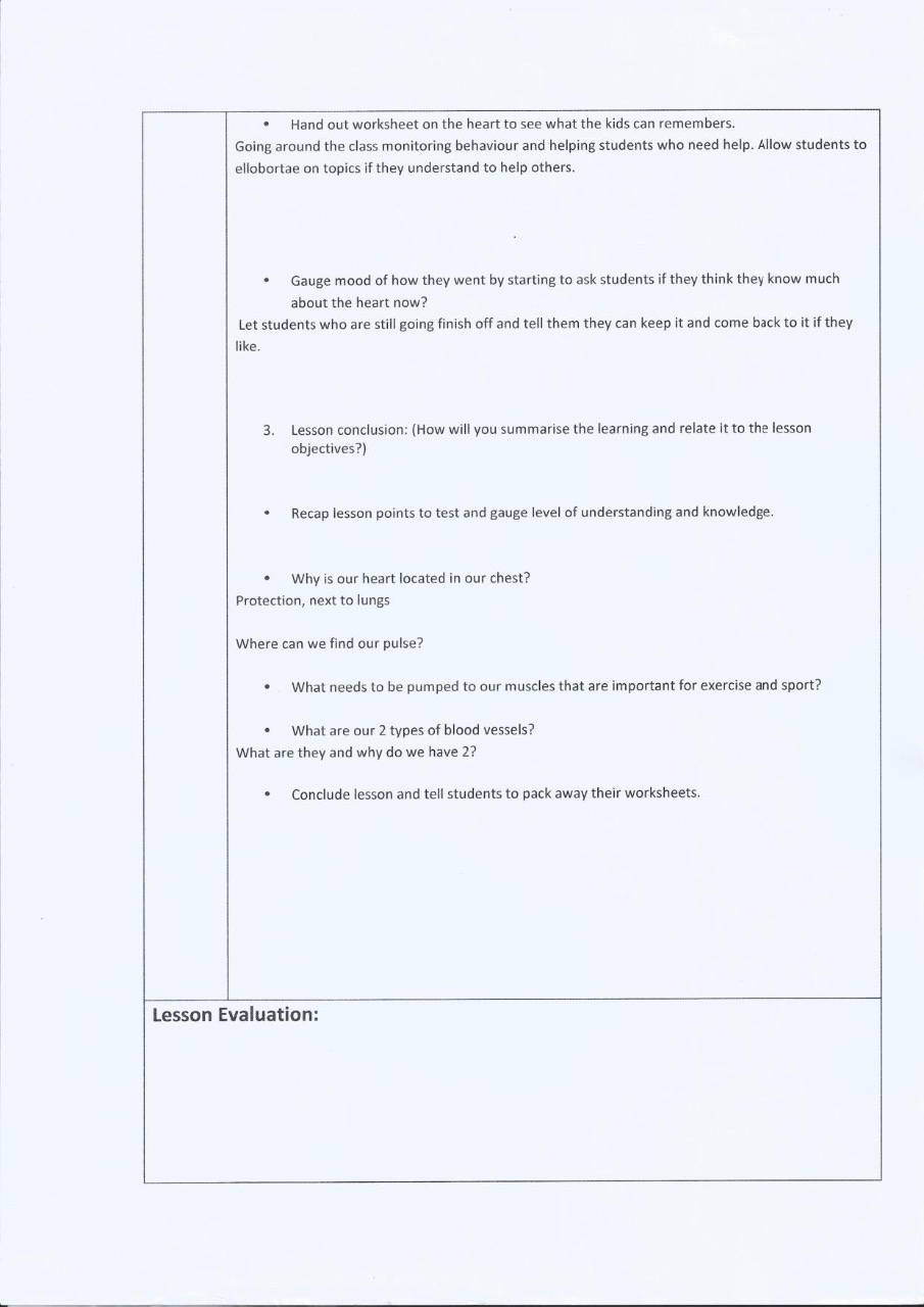 Yes, through all my questions there was a good balance of question types. At the start of my lesson, when I started to introduce the heart and its function I used recall questions. Although as I moved through I used comprehension questions to get the kids to explain what they understood. |