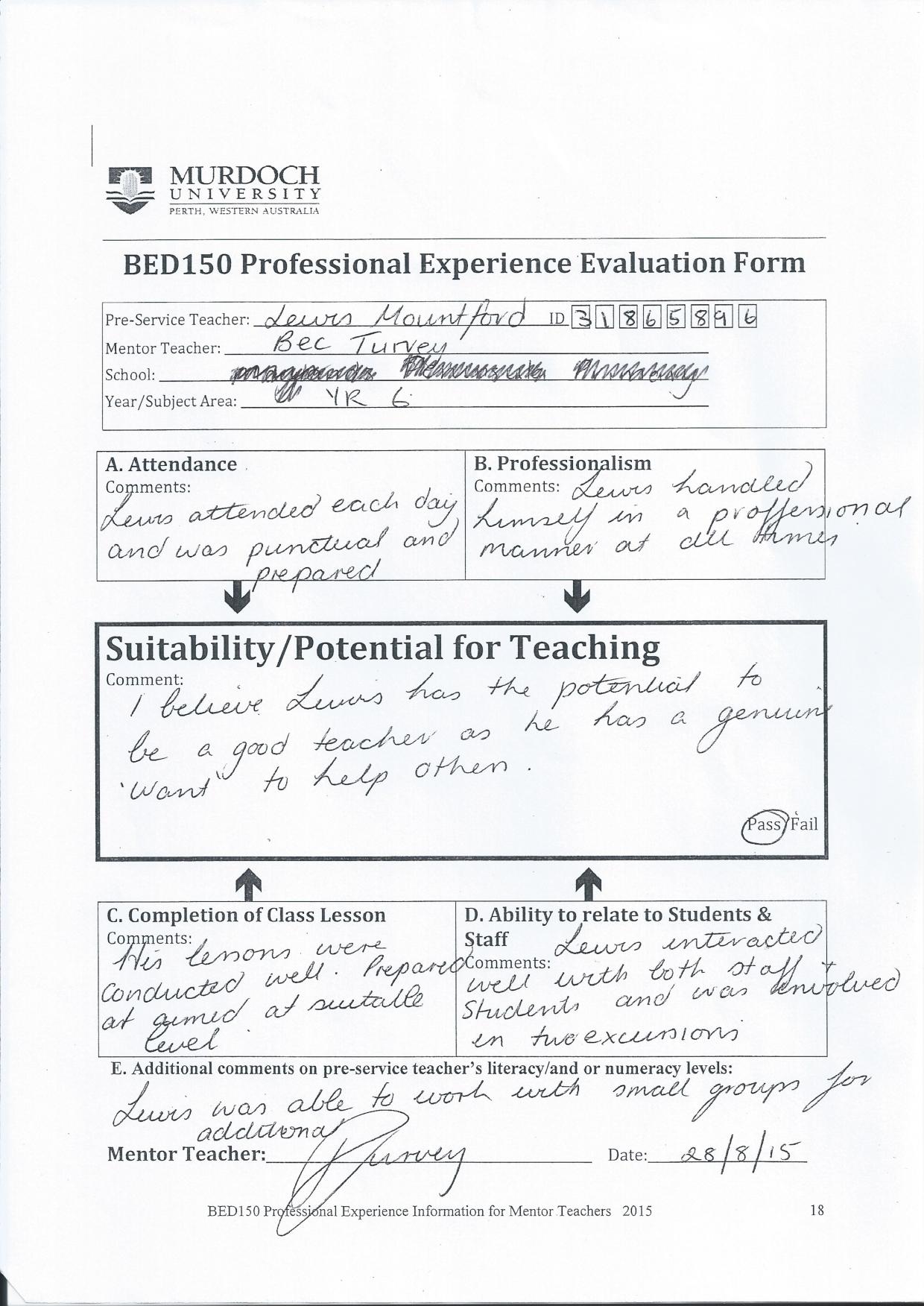 (Please complete this form for both primary and secondary professional experiences and place in your ePortfolio)